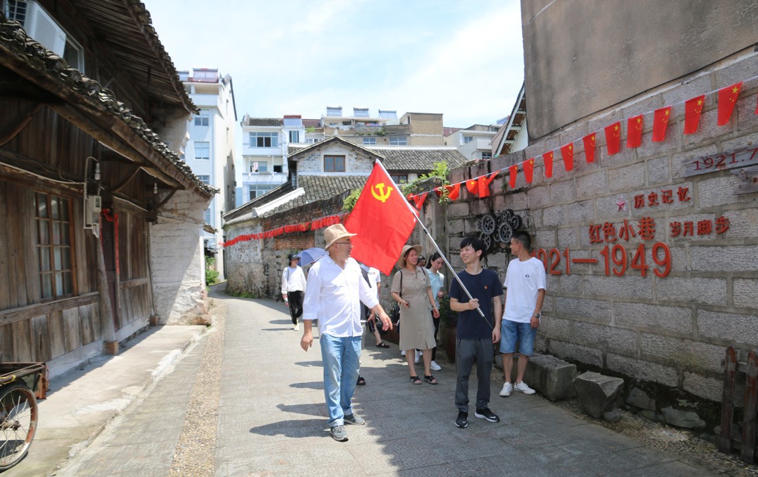隨后,穿過(guò)一條經(jīng)過(guò)歷史洗禮的紅色小巷,全體黨員來(lái)到包定故居,通過(guò)故居內(nèi)的 照片、文字、雕像等實(shí)物再現(xiàn)了以包定同志短暫而熱血的一生,革命先輩們?cè)⊙獖^戰(zhàn), 為共產(chǎn)主義理想信念流血犧牲的光輝歲月。一幕幕的場(chǎng)景再現(xiàn)不僅讓黨員們對(duì)革命歷史 有了更深入的了解,更是一場(chǎng)思想和心靈上的洗禮。